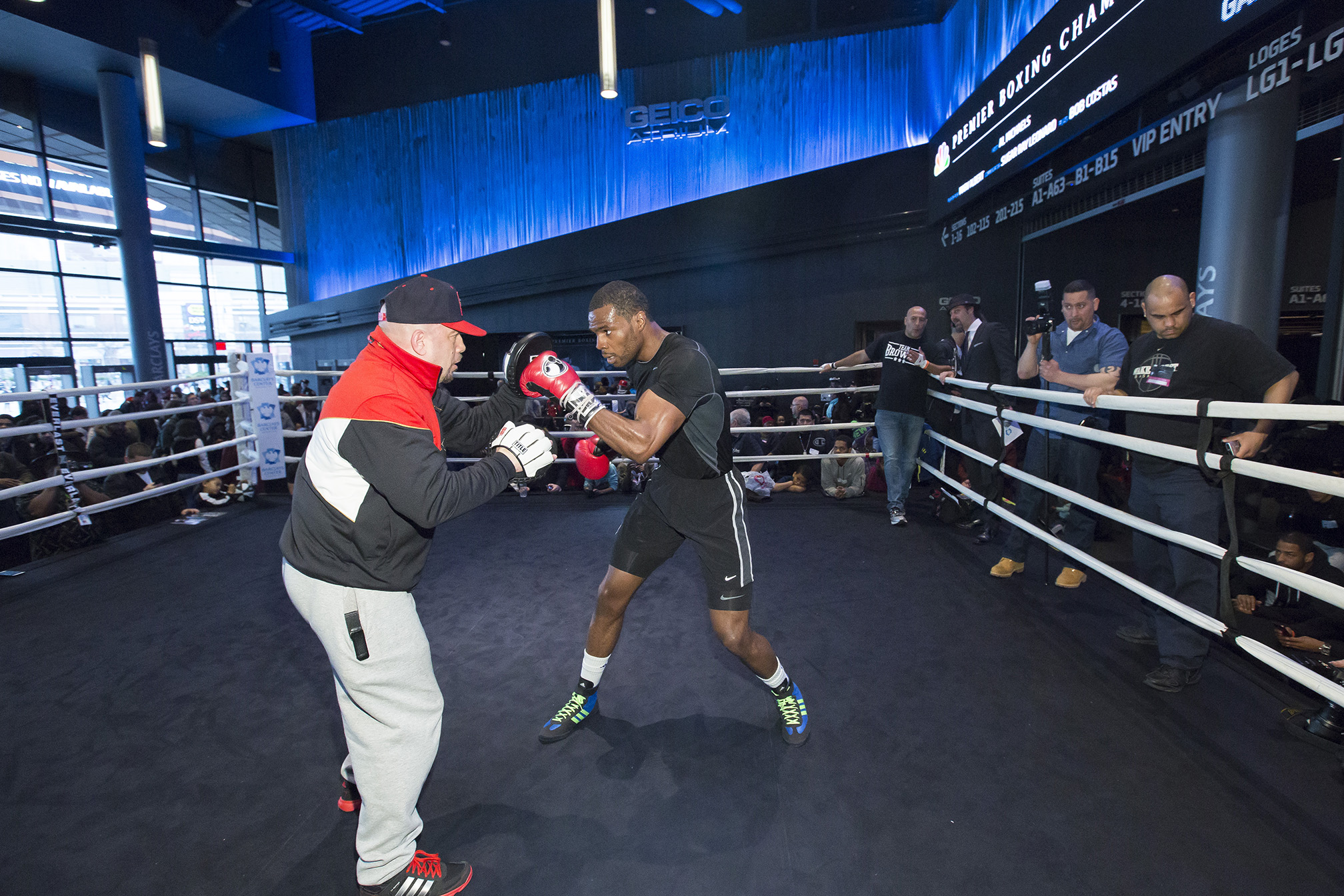 Box – Open Workout Duben 8, 2015 2016 × 1344 PREMIÉRNÍ ŠAMPIONI V BOXU NA CITNÁCH NBC MEDIA WORKOUT & FOTKY Duben 7, 2015: An open workout is held in the atrium at Barclays Center for the upcoming boxing match.