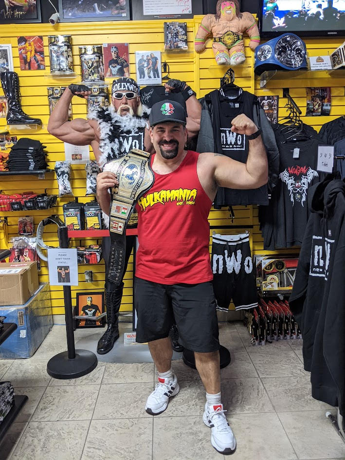 I built a tradition every year with my nephews buying them Hulk Hogan shirts. I bought Dominic his first shirt, the classic yellow, when he was just a year old in 2018. When my nephew Matteo was born three months early, I was in Clearwater. I went to the shop the next day and bought him a Hulkamania infant jumper. When he was finally able to come home after months in the NICU, his parents dressed him in that leaving the hospital. He had made his first Hulk Hogan superman comeback in life. This year, I bought our matching shirts again and the young lady running the register remembered me and my tradition with the boys. She gifted them both costume mustaches. When I gave them their shirts and mustaches, they were so excited to take their pictures. Matteo even fell asleep in the car wearing his shirt and mustache. I felt like the coolest uncle in the world. Because of Hulk Hogan, I was able to give these two little boys a tradition that they could look forward to.